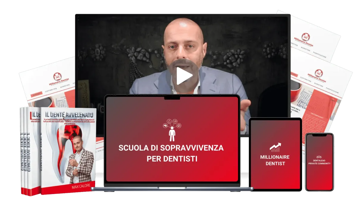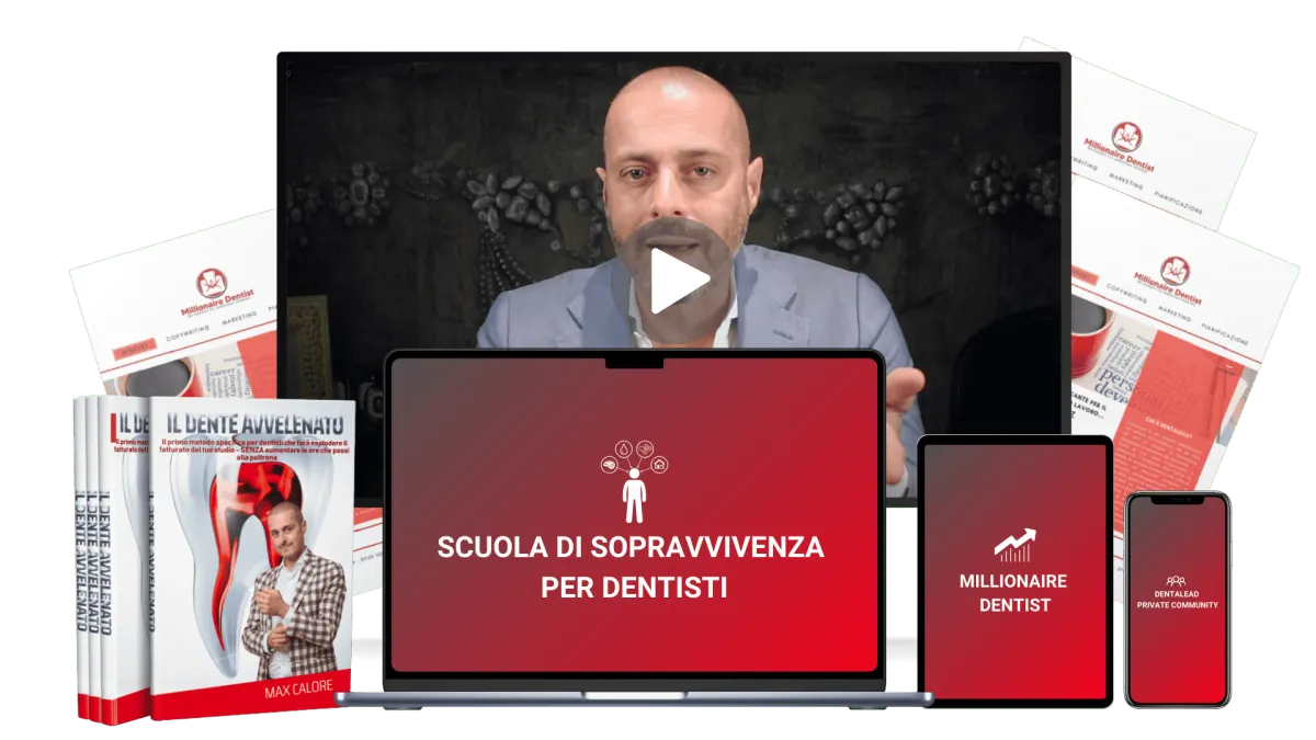 Il ‘Dente Avvelenato’ è il mio nuovo libro in cui svelo il metodo con cui ho reso milionari oltre 268 dentisti – che ti consente di raddoppiare, triplicare, o addirittura quadruplicare il tuo fatturato, senza aumentare le ore alla poltrona o investire in pubblicità.